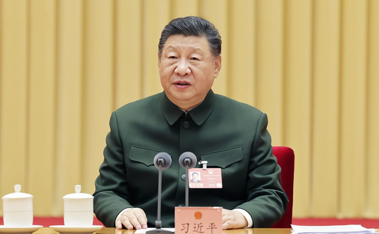 中共中央总书记、国家主席、中央军委主席习近平出席十四届全国人大四次会议解放军和武警部队代表团全体会议并发表重要讲话。