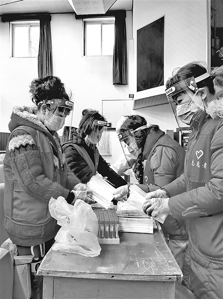 长庆油田退休职工文体协会党员志愿服务队与西仪两个站等组成志愿者服务联盟队,共同助力社区开展“敲门行动”,服务大规模核酸检测和网格化摸排人口信息登记工作。