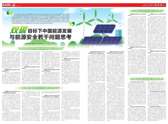 | 双碳目标下中国能源发展与能源安全若干问题思考 |