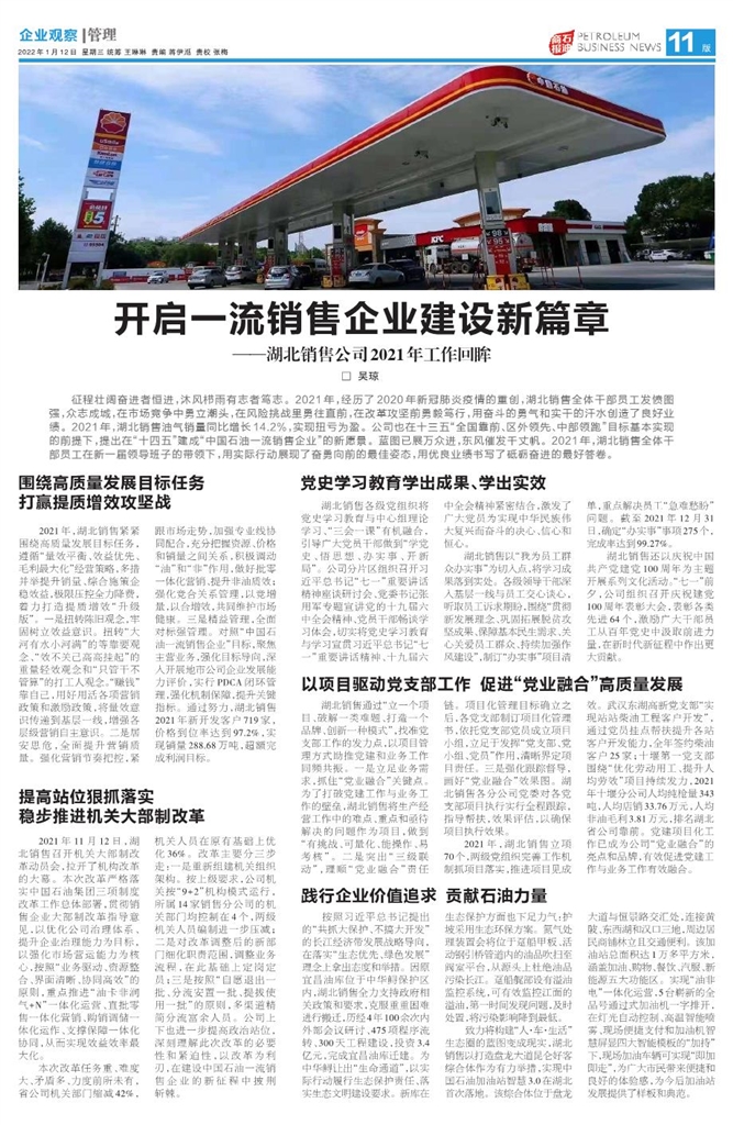 ——湖北销售公司2021年工作回眸