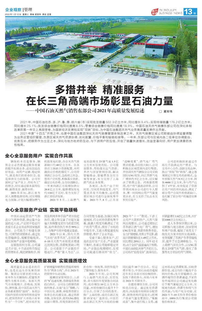 ——中国石油天然气销售东部公司2021年高质量发展综述