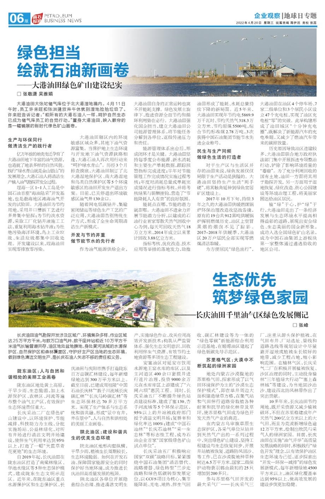 植“绿”于心,护“绿”于行,大港油田走出了一条经济发展与生态环境水平提高相得益彰的道路,展现出安全绿色、生态美丽的国企新形象,成功入选全国绿色矿山名录,成为中国石油集团上游板块第一家整体通过遴选验收的地区公司。