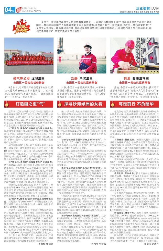 储气库公司:辽河油田全国五一劳动奖状获得者