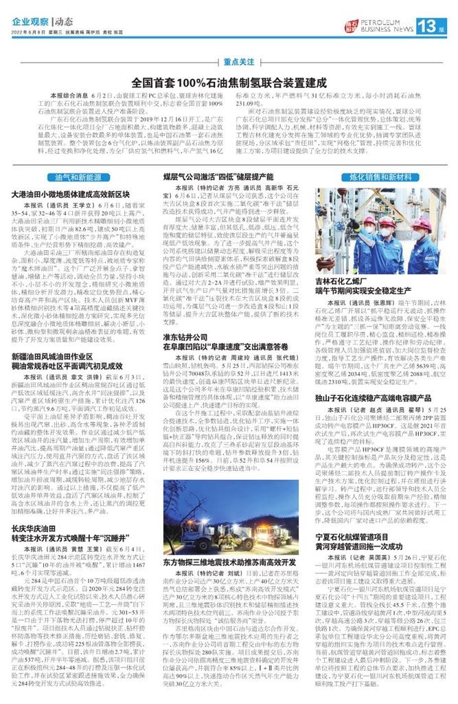 吉林石化乙烯厂端午节期间实现安全稳定生产