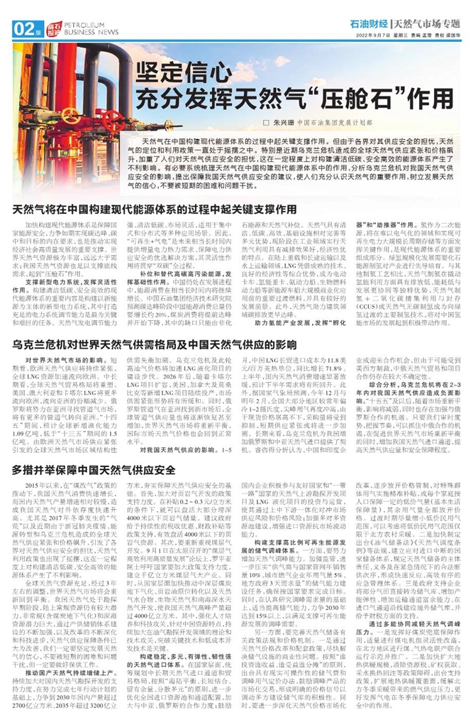 加快构建现代能源体系是保障国家能源安全,力争如期实现碳达峰、碳中和目标的内在要求,也是推动实现经济社会高质量发展的重要支撑。世界天然气资源极为丰富,远远大于需求;我国天然气资源也足以支撑底线需求,起到“压舱石”作用。