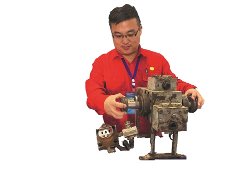 现场人员反映鲁中联合站污水处理刮渣机效率低的问题,金勇才和技术服务专家在现场进行调研后,提出了新的解决思路:刮渣片的设计由原来的单片型改为多片旋转型或浮子型,有效提升了刮渣机运行效果。